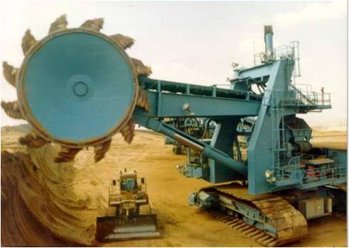 Bucket wheel excavator is a key machine to complete mining and excavation application in the continuous mining, transportation and discharge process. It is applied to the large-scale project with great amount of exploitation and long length of service, in particular, to applications in open-pit mines and large-scale earthworks. Bucket wheel excavator can operate continuously with high efficiency and low consumption. The bucket wheel excavator can be used for rock stripping operations as an alternative solution for drilling and blasting process. The machine can effectively reduce harmful emissions in aspect of environmental protection. Besides, bucket wheel excavator is applicable for the exploitation of soft mines in good occurrence conditions. Depending on the equipment structure and rated production rate, the bucket wheel excavator can be categorized as discharge connecting bridge type for large-scale mining application, discharge boom type for compact type mining application and discharge connecting bridge type for giant mining application. The bucket wheel excavator is a kind of mining machine which can work continuously. And it presents the features of small linear size, light weight, large excavation capacity, high production rate, excellent adaptability and outstanding energy conservation and environmental protection performance. The machine is of widespread applications in not only the overburden stripping and mining operations, but also the works for roads, dams, canals, artificial lakes, foundation construction of large projects, reclaiming farmland from waters and large open-pit stockyards. Our company can provide various standard type- and extended-length type bucket wheel excavators driven either by diesel engines or electric drives. The machines can also be tailor-engineered to suit the client’s the requirements.