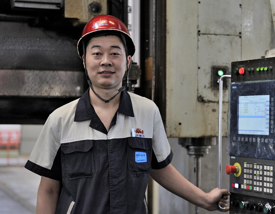 10多年來,他先后在φ260數控鏜床和φ250數控鏜床跟著師傅學技術,勤奮好學的他一門心思刻苦鉆研,深得師傅們的喜歡。領導看他是個好苗子,把他調到關鍵機床——17米數控龍門銑床上鍛煉,公司里的遼寧省勞動模范、全省首批大工匠孫柏成也成為了他的師傅。能跟著勞模、大工匠學技能,張旭感到非常幸運,也更加勤奮自覺,下決心要把師傅的“絕活”學到手。班上,他跟著師傅苦學苦練,下功夫鉆研數控加工技術和技能。業余時間,他把別人消遣娛樂的大把時間用來充實數控加工理論。在師傅的言傳身教下,他的加工技術大有長進,一年后就能獨立操作機床加工復雜的工件,一步步成為生產攻關的骨干。